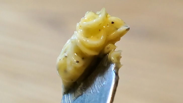 這就是歐式松露奶油,傳統歐式奶油的作法是先讓牛乳進行乳酸菌發酵,乳酸菌分解乳醣產出乳酸與其他風味物質,所以做出來的奶油比起一般市售的奶油香氣更濃郁,風味豐富多層次,另外加上少許的松露更增添獨特香氣。