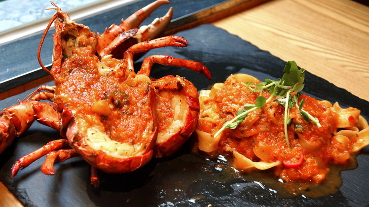 老媽的單點:爐烤整隻波士頓活龍蝦佐辣味蕃茄手工麵