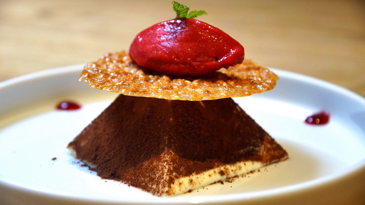 套餐的結尾:手做提拉米蘇,覆盆子雪酪