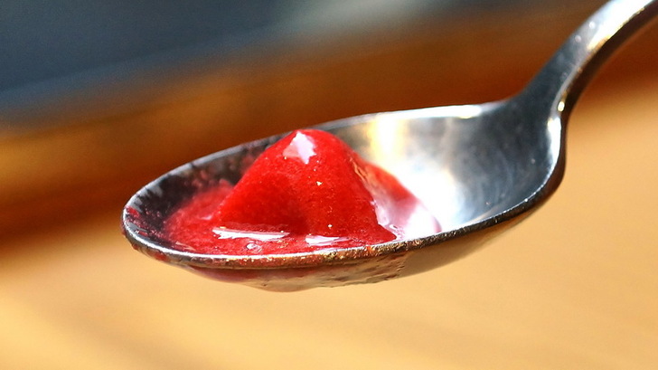 上層的覆盆子雪酪冰涼酸甜,用餐後嚐點雪酪,精神為之一振,不過動作要快,不然很快就融化了。
