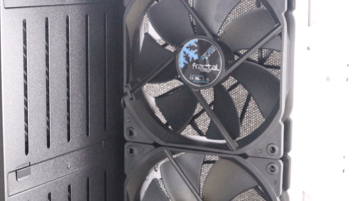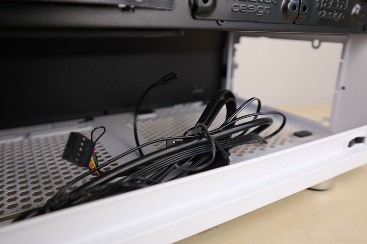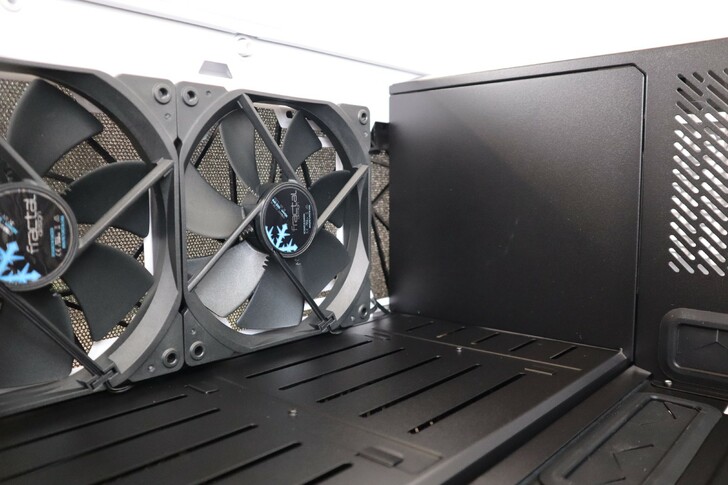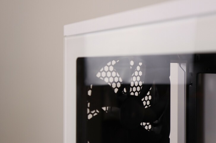 Meshify S2 出廠就搭載三顆了 Dynamic X2 GP-14,前擋板位置有兩顆用於進氣,Logo 是向內的。而畫面中風扇旁的區域,是可以卸除的模組化設計。