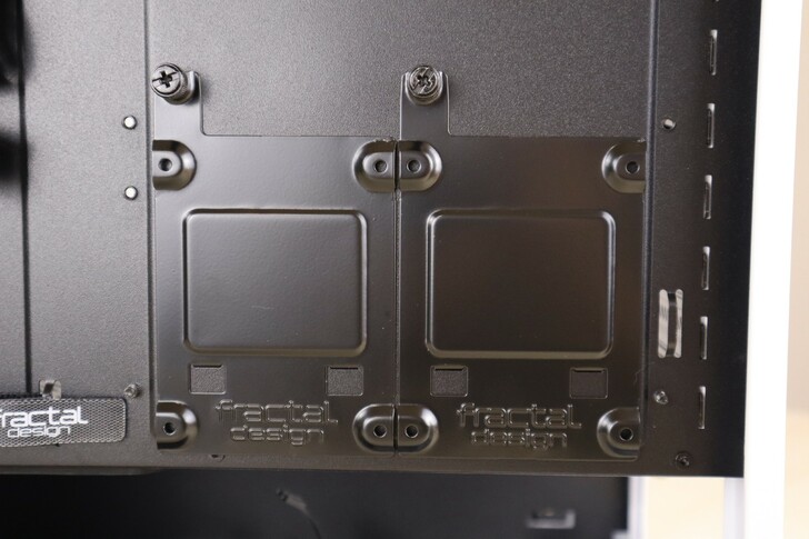 每個硬碟支架上都有 Fractal Design 的 Logo,透過手轉螺絲可以將外殼卸下安裝硬碟。