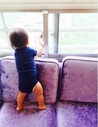 這就是我們家的窗台,因為浩浩喜歡拿著椅子墊高開窗又很喜歡在窗台前玩耍