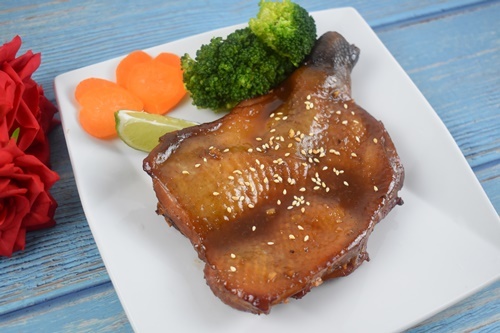 用餐心得:貼心去骨雞腿,吃起來更方便優雅,金黃色脆皮,簡單料理調味,更能帶出雞肉的鮮美,大口咬下,肉質軟嫩鮮甜,蜜汁在嘴裡流動,酥脆多汁,猶如在高級西式餐廳吃到的一樣迷人美味。這種做法的蜜汁雞腿,能快速做好一道料理,但沒有醃製過的雞腿在味道上就比醃製過的肉質香氣輸很多,幸運的是穎川家雞肉非常新鮮即使醃製時間不足料理依舊美味可口,所以小弟才能做出好料理。
