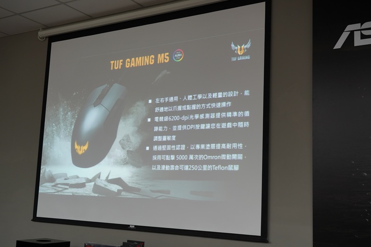 ▲TUF Gaming M5左右手通用,配備電競級6200-dpi光學感測器、5000萬次 Omron微動開關、耐用的表面塗層以及 Aura Sync燈效。