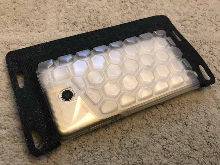 背面的蜂巢式氣泡結構是其特色,就這特殊結構可以在放置手機後仍可浮在水面上沒問題