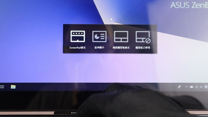 透過按鍵盤上的 F6,可以切換觸控板的模式。目前的模式是 ScreenPad,就是一個應用程式的感覺。而延伸顯示則是將觸控板作為第二個螢幕,預設是上下排列,也可以到設定裡自行調整。