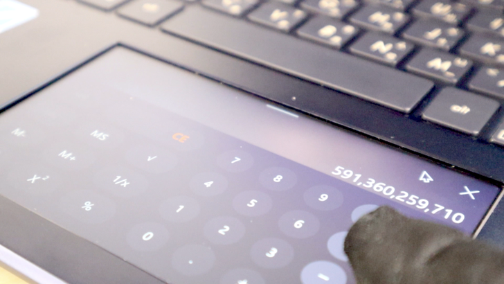 計算機最大顯示 16 位數(可以計算更多)。點擊右上角「X」就可以離開計算機。點選「滑鼠」的符號,就可以快速換回觸控板的模式,我覺得這個設計很好,可以快速回歸觸控板的主要功能。