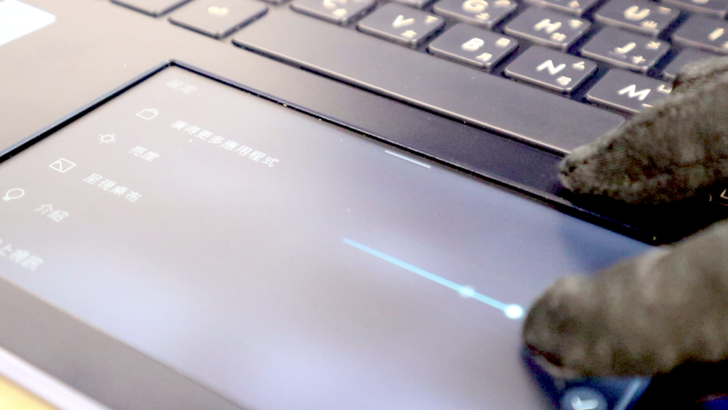 即便帶著手套也可以勉強操作,圖中正在調整螢幕亮度,可以看到其反應稍有延遲,即便是沒有戴手套直接用手操作也有類似感覺,希望未來能改善反應速度,對使用體驗會更加分。