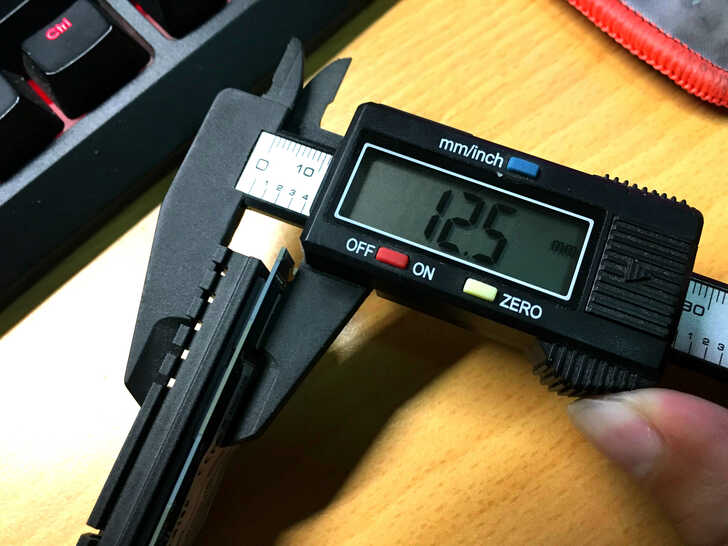 鋁擠散熱片 + PCB 的厚度約 12.5mm,若想安裝在筆電上或是 M.2 接口在背面的 Mini-ITX 主機板可能就要說聲抱歉了,除非將散熱片給移除,但此行為有可能會破壞保固,因為從外觀上要判定真的不難,但筆者無法教學就是了XD