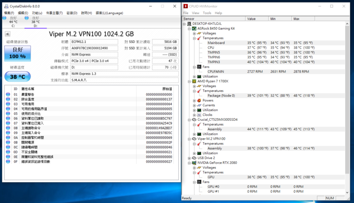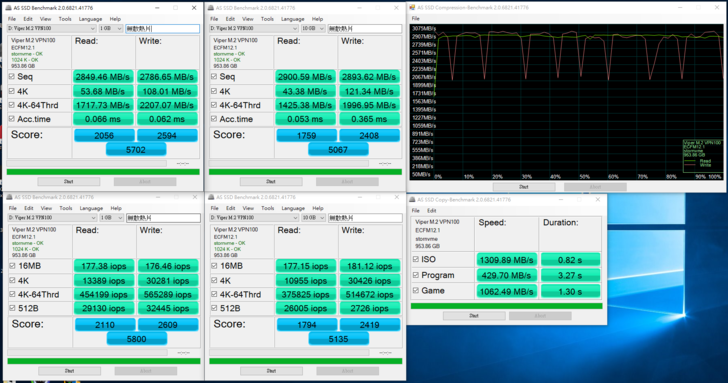 可直接安裝在主機板上的 M.2 槽位,但由於目前許多主機板開始配置 2 個 M.2 槽位,若想發揮 VIPER VPN100 1TB 的真實力必須安裝在 M.2 PCIe Gen3 x 4 的位置上,另外也要先了解一下主機板的配置是否與其他接口共用通道,否則實測結果不是性能減半,不然就是其他介面卡會無作用。