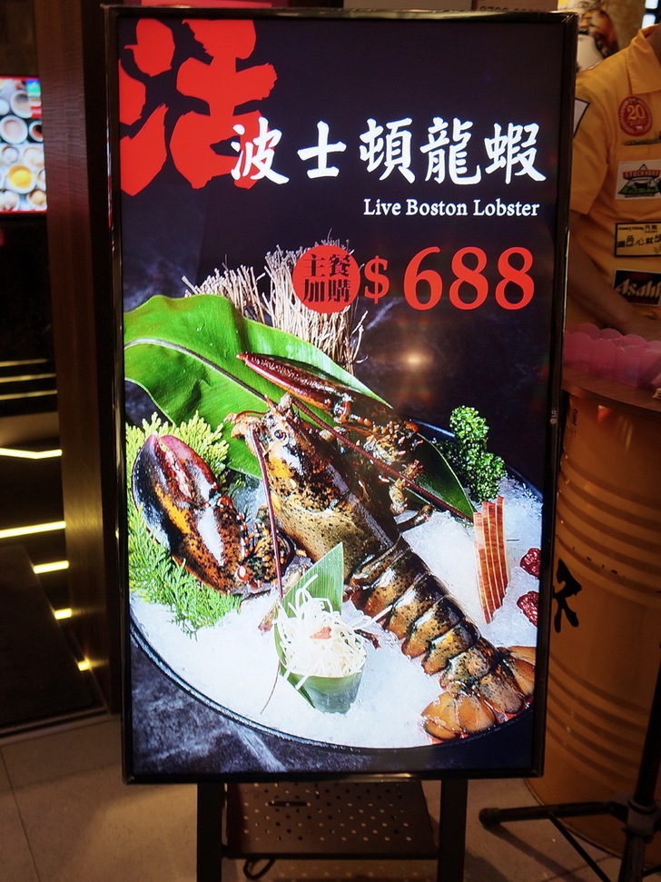還沒進門就看到偌大的廣告,呦…這個厲害喔,新鮮活跳跳的波士頓龍蝦一隻只要688元