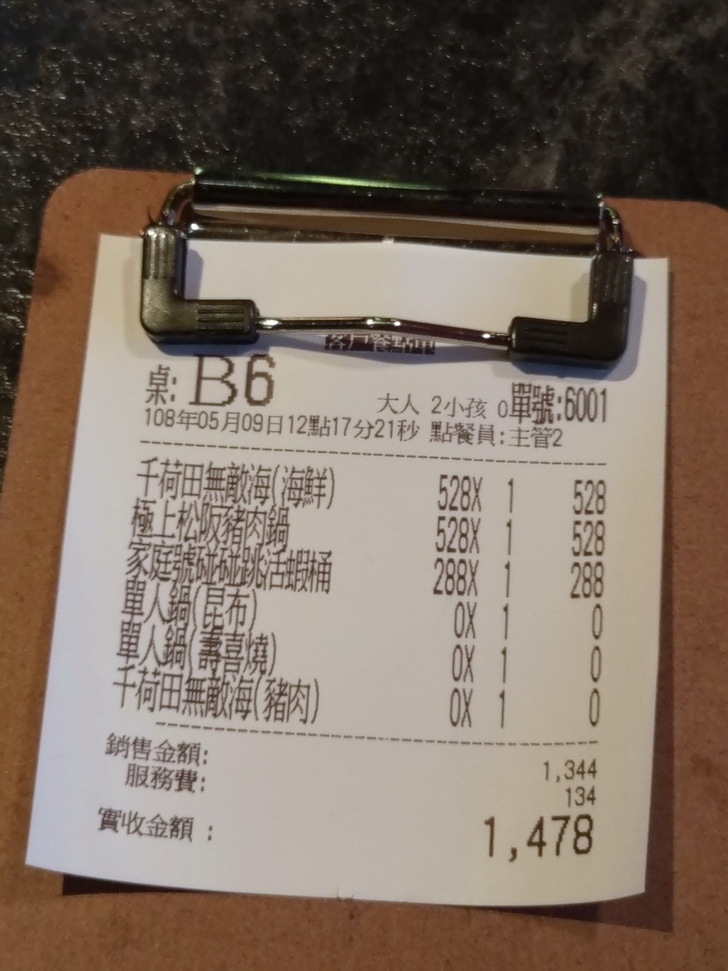 那要點什麼好呢?老媽喜歡吃海鮮,老媽點了千荷田無敵海陸鍋,除了滿滿海鮮之外還有一盤豬肉片,至於我呢?我是無肉不歡的人,所以我當然是點肉類主鍋囉,慶祝母親節嘛,也對自己好一點,我點了比較高價的極上松阪豬,然後在店長的推薦之下,加點了一份家庭號碰碰跳活蝦桶,今天海鮮就是吃好吃滿,減肥的事明天再說。