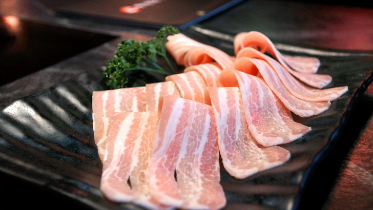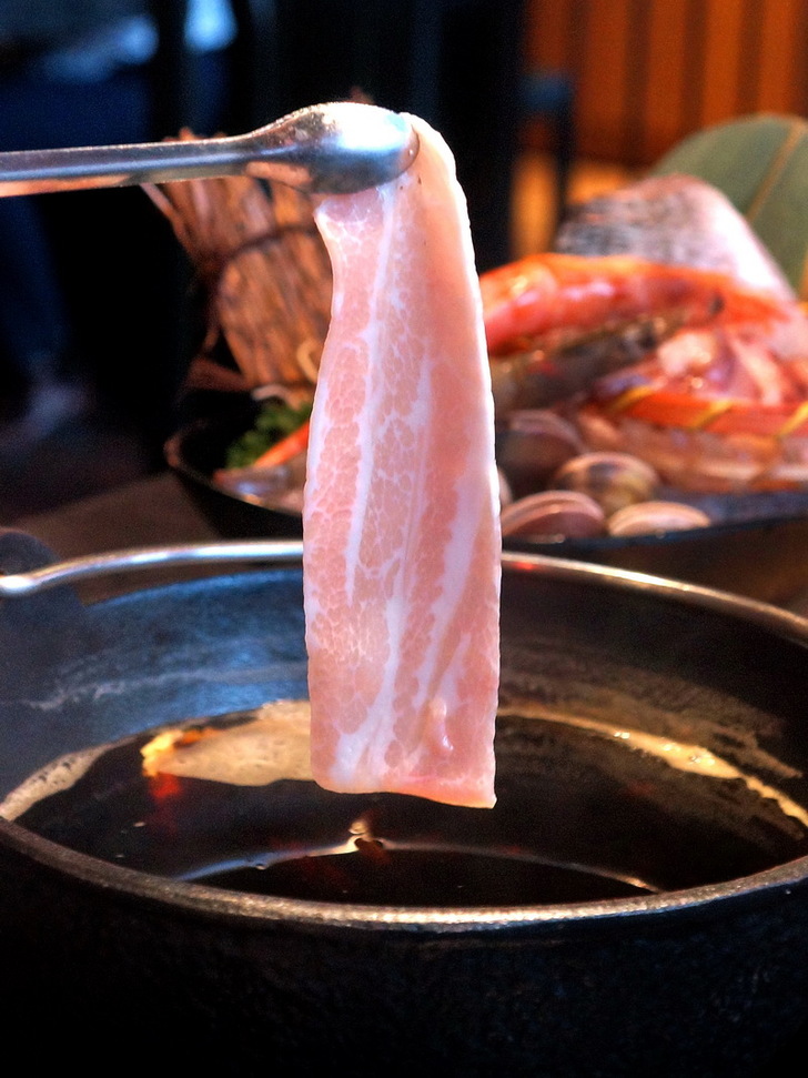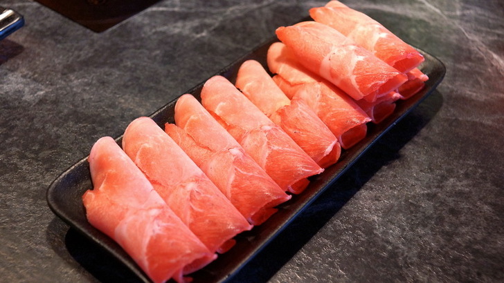 這就是我的極上松阪豬啦,一眼就看得出來這豬肉的油花均勻,完全跟普通火鍋的梅花豬肉片檔次完全不同。