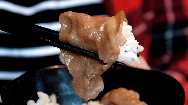 用松阪豬肉夾起米飯大口吞下,只有一個字可以形容,那就是「爽」。