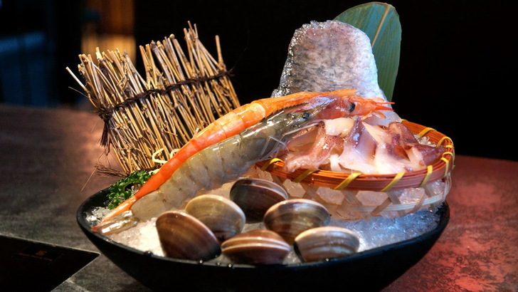 海鮮部份:1隻白蝦,1隻天使紅蝦,1隻小卷,6個蛤蜊,鱸魚1片,鯛魚1片。