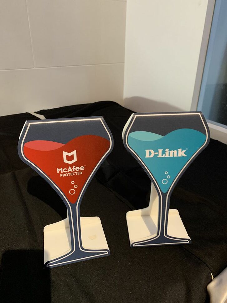 研討會有趣的擺設象徵雙強聯手的雞尾酒杯 McAfee + D-Link
