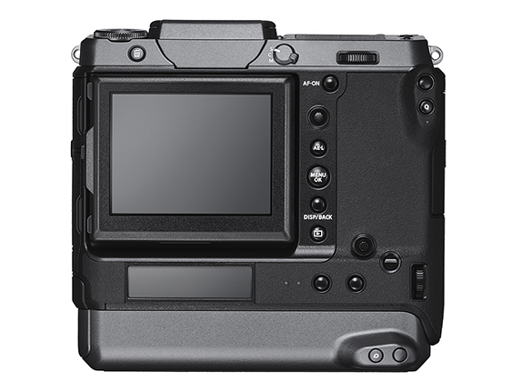 GFX100繼承了GFX50S上備受歡迎的可拆卸EVF電子觀景窗,並可翻折到各種角度,並使用解析度高達576萬畫素的OLED製成。觀景窗放大倍率為0.86倍,可根據攝影師需求,將EVF電子觀景窗設定為「畫面播放速率優先」、「解析度優先」或「自動對焦速度優先」模式。