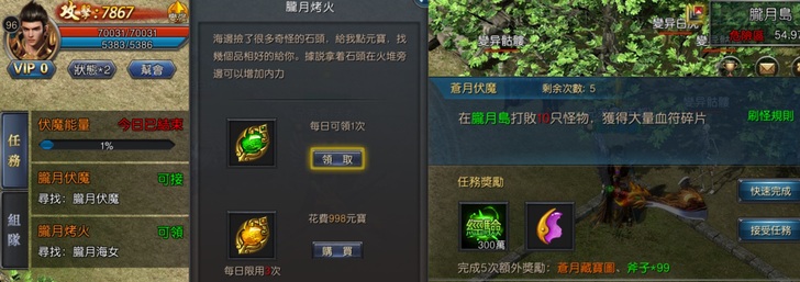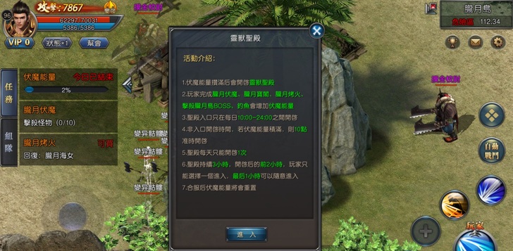 島上任務有次數限制,島嶼中無法神陪伴,戰力不強的玩家建議打帶跑方式一對一打小怪,慢慢累積
