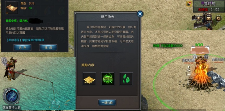 朧月烤火一天可領一次石頭,在火堆旁可提升內功經驗。