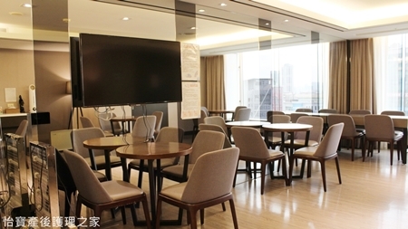 很有質感的接待交誼廳,桌椅座位其實蠻多的,平常親朋好友要探訪都是在這,還有媽媽課程也是在這邊,另外值得說的是他們媽媽教室課程非常豐富,之前我還有上過瑜珈,他們還有專門的瑜珈教室呢!