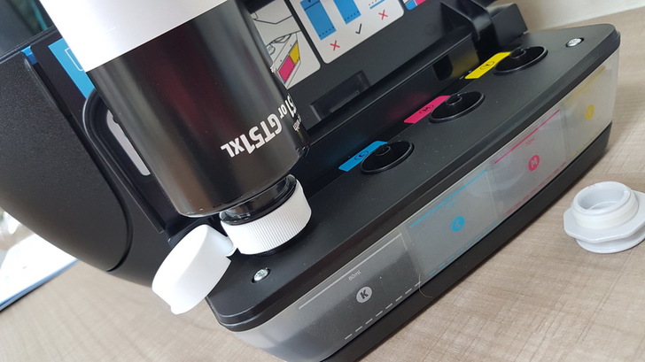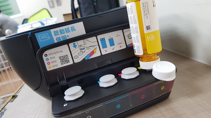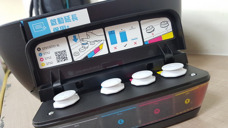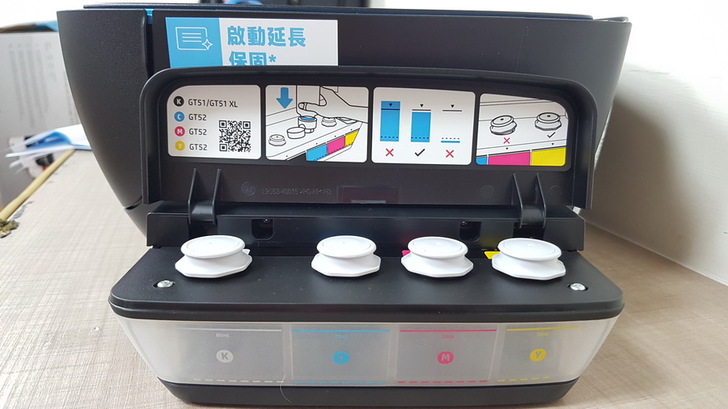 ▼ 印表機的右側蓋子打開,就是填充墨水的地方,顏色也標示得非常清楚,不會有人這樣清楚了還裝錯吧?