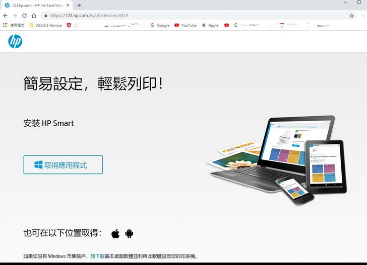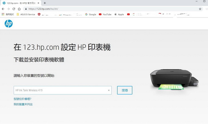 ▼ 筆者連接的作業系統為 Windows 10,沒有遇到什麼問題,直接在網址列輸入 123.hp.com,打開網頁後再輸入印表機的型號,就會指示安裝 HP Smart。