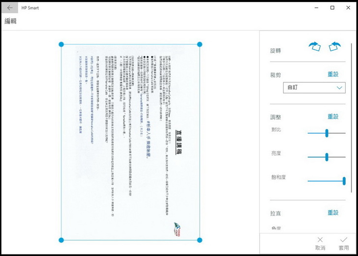 ▼ 最厲害的是掃描之後,還可以直接在手機上編輯掃描之後的檔案,不論是裁切還是旋轉都可。