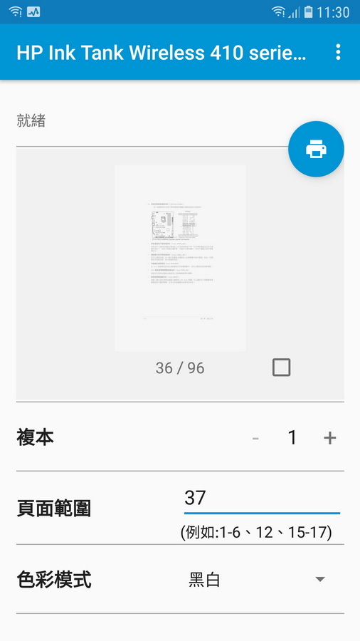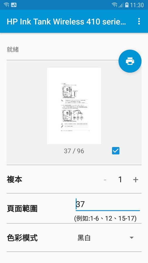 ▼ 檔案有太多頁的話,可以自行輸入想列印的頁數就好;預覽時只要不是有選取到的頁數,就不會出現打勾的圖示。