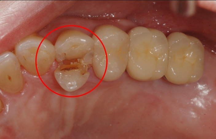 感覺裂到只剩下半顆臼齒~中心點還有很深很深一個大洞洞
