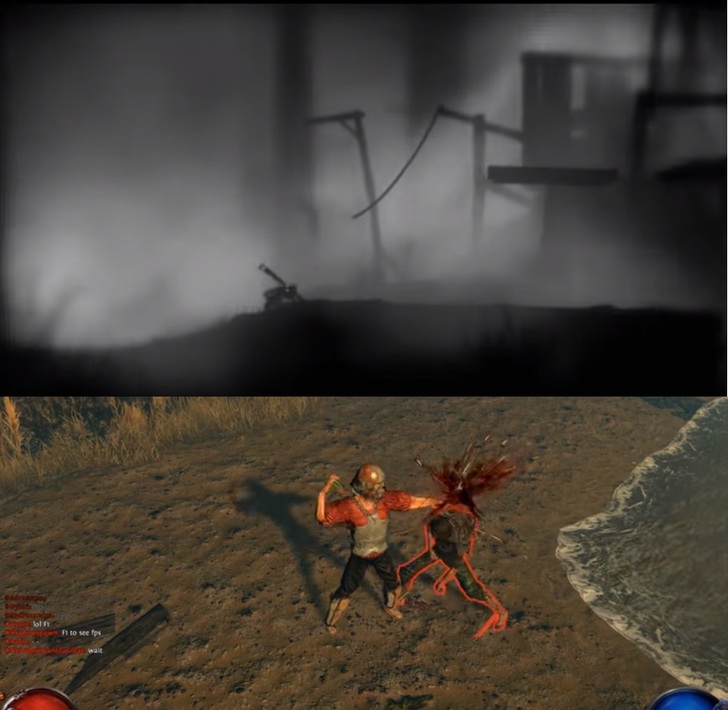 2D橫向捲軸遊戲,黑白風格來表現,利用光線、顆粒感畫質和微小的環境噪聲,