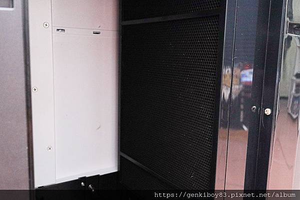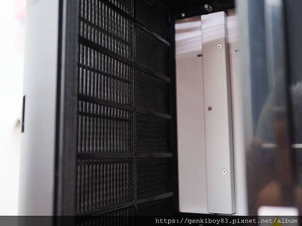 清淨機的過濾效果好壞濾材的層次是關鍵之一,拆掉正面面板後可以看到整個進風道中間的濾材有多麼厚實!一共具有七層的不同功能的過濾效果