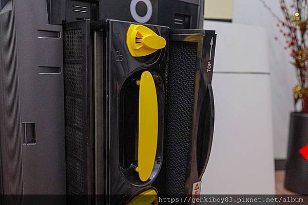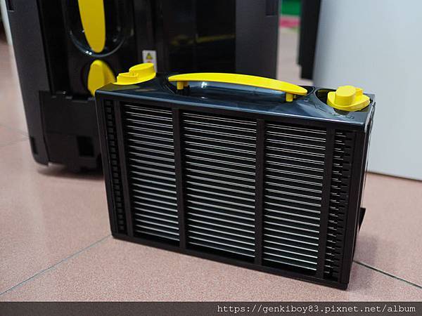 因為集塵箱上有提把設計,所以能夠很輕鬆的拔出,一拔出來之後就能感到集塵箱的份量!也代表過濾效果應該會相當不錯。