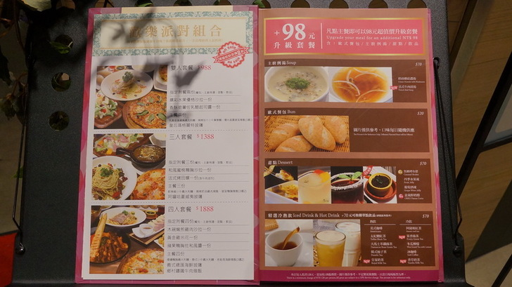 這裡的點餐方式,很簡單,你先點主餐,看你想吃義大利麵,燉飯還是Pizza都可以,如果想吃得豐盛一點,可以加價98元,將單點升級成套餐。