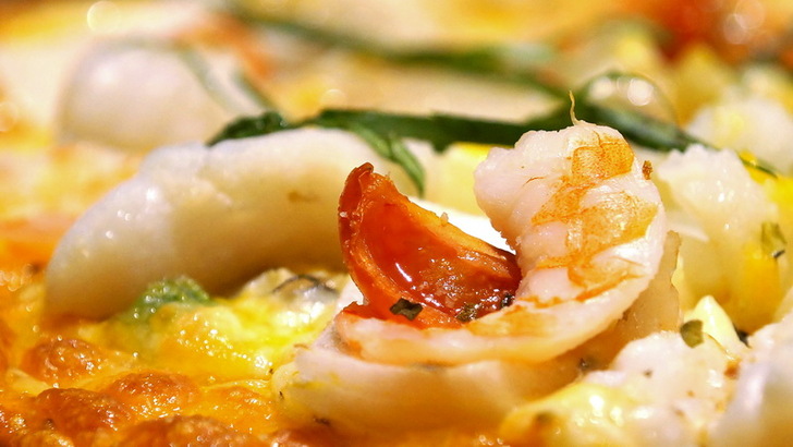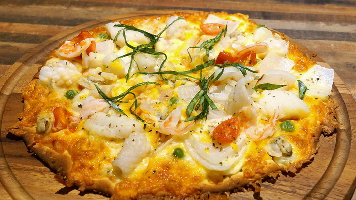 老媽一直勸戒我,我已經不是20歲的少年了,肉少吃點,口味清淡點,多吃點魚肉海鮮類的。這個義式總匯海鮮Pizza完全符合老媽的教誨。