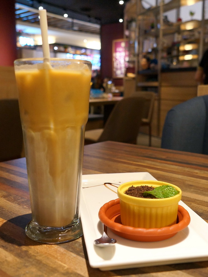 這是餐後的冰咖啡與盆栽鮮奶酪