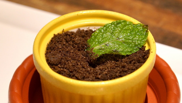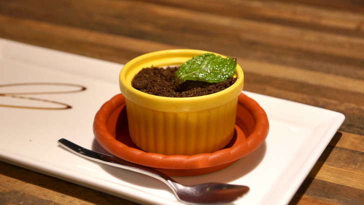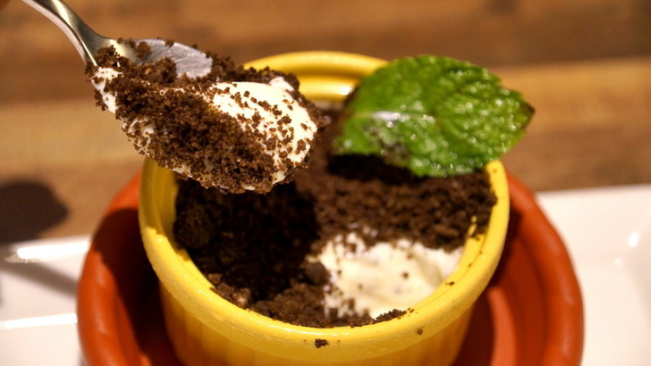 鮮奶酪不是沒吃過,但盆栽鮮奶酪真的是第一次吃,壓成粉末的巧克力碎片真的好像培養土