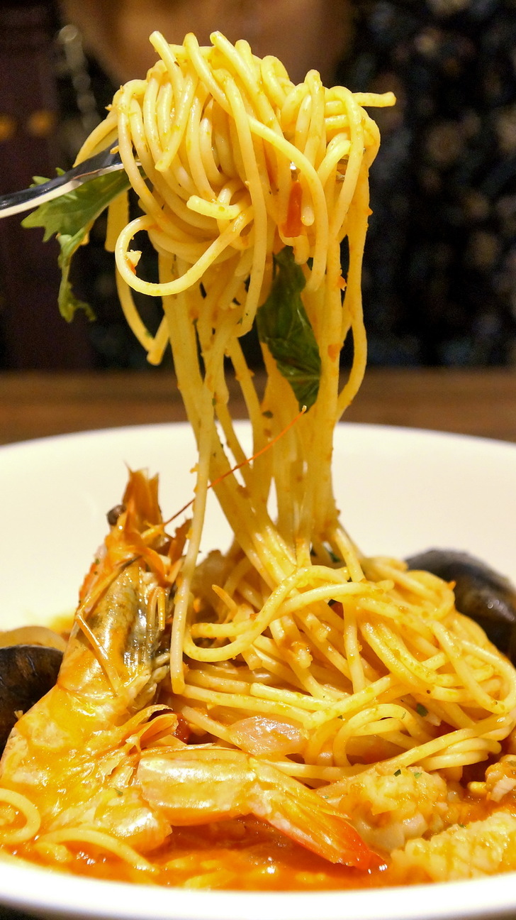 老媽的亞馬遜海鮮義大利麵,光聽名字很嚇人,還好麵裡面沒有什麼洪水猛獸,但是海鮮確實不少。