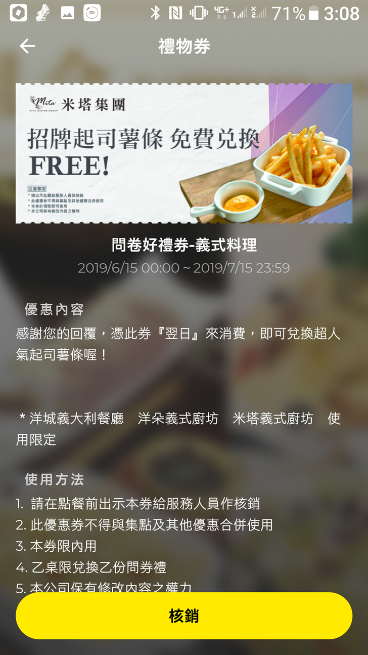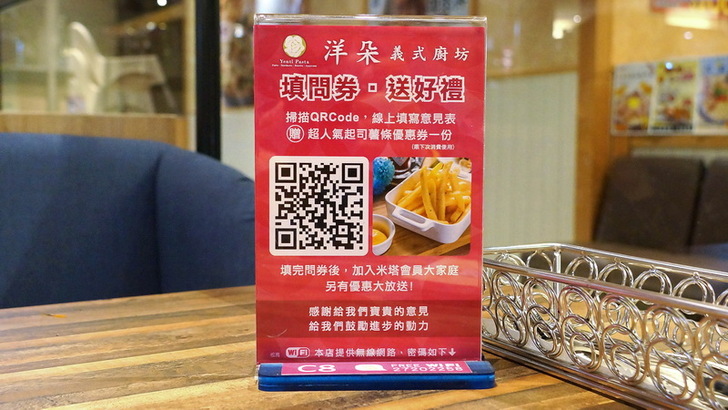對了,填問券之後下次來還可以送起司薯條,快來填一下