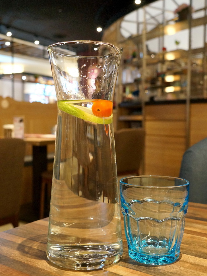 趕快入座吧,早餐沒吃,現在有點餓呢。不過天氣好熱,先喝杯檸檬水解解渴吧。