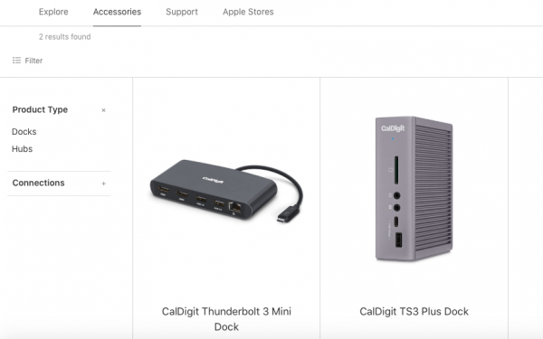 目前除了美國Apple商店外,只有少數幾個國家同時上架此二款商品,大多數國家現階段只能看到Mini dock-HDMI這款,包含台灣在內,而TS3 Plus預計於七月全面上架。用戶可從“搜尋“標記處打上CalDigit即可搜尋到此產品。