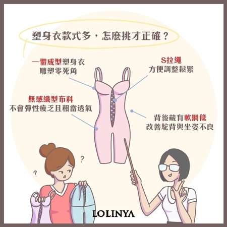 選擇產後塑身衣有4個關鍵:包覆性、透氣度、鬆緊度、腰部支撐力。這些細節蘿琳亞塑身衣都兼顧到,獨家連身式一體成型設計,0死角包覆全身贅肉;無彈性纖型布料,內含機能性纖維Coolplus®,能瞬吸汗水、快速排濕,超透氣; S拉繩可依照身體狀況,局部調整胃、腰、腹的鬆緊度;背部則有軟鋼條支撐脊椎,有效改善駝背與坐姿不良等問題,建議產後媽媽穿塑身衣要以目前身型需求來挑選,並且「量身定做」,才能達到瘦身效果!