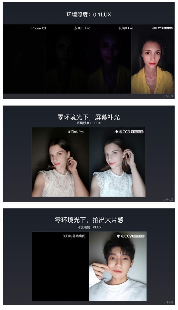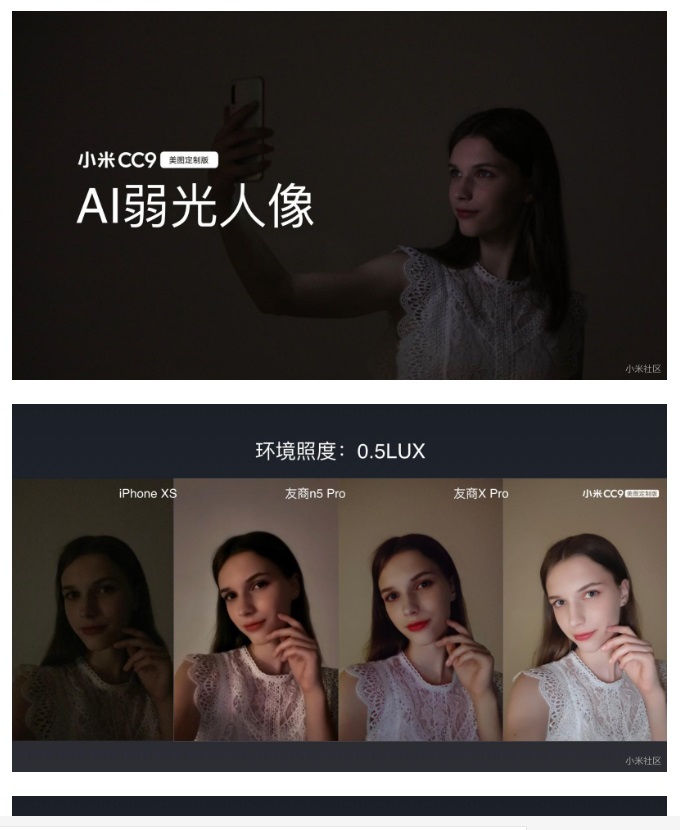 光線不足的時候,如何才能拍出高級感?小米CC9美圖定製版,搭載AI弱光人像功能,統一環境下進行拍攝,小米CC9美圖定製版明顯比友商的拍照效果更好。