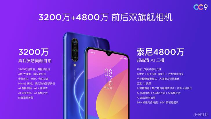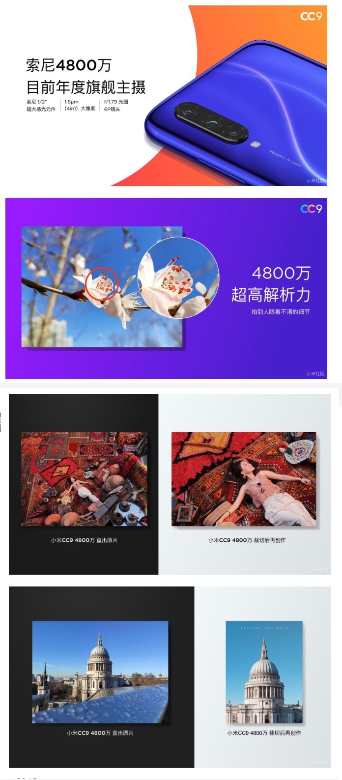 用一張圖來總結小米CC9 3200萬+4800萬前後雙旗艦相機的特點。