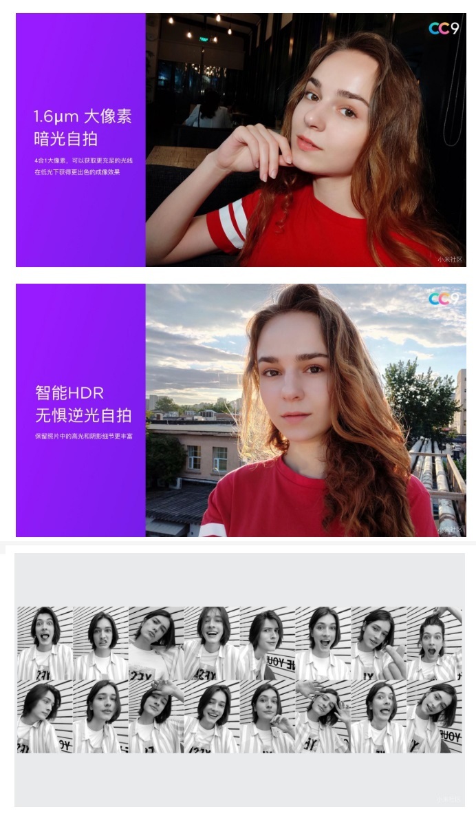 CC的另一個含義可以解讀為雙Camera。小米CC9採用3200萬前置旗艦相機。這也是目前市面上像素最高的前置相機,可以輕鬆拍出海報級分辨率的超高清大片。