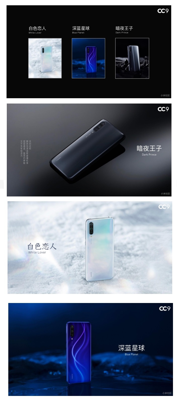 白色戀人、深藍星球、暗夜王子,這就是小米CC9的三款配色,你更欣賞哪一款呢?
