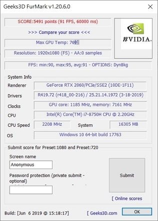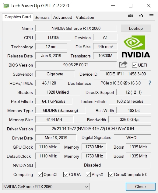 細節規格 : i7-8750H/RTX2060 6G/8Gx2 DDR4-2666/