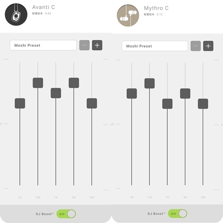 ▲在插入USB-C耳機時就會自動判別是Avanti C耳機還是Mythro C耳機,然後可以自己設定喜愛的音效等化器(EQ) 。