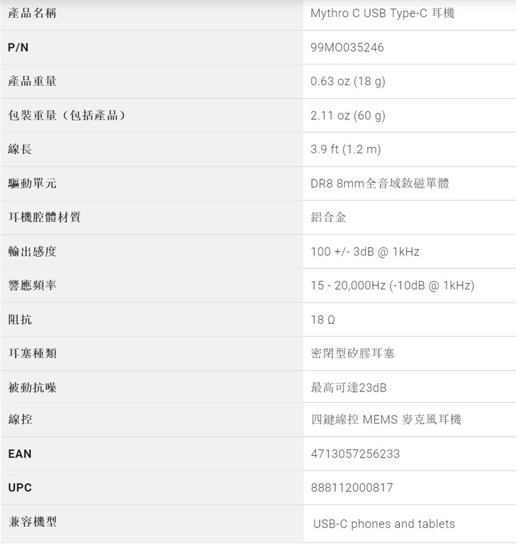 這次主推2款USB-C耳機,分別是Mythro C(入耳式)、Avanti C(耳罩式)。