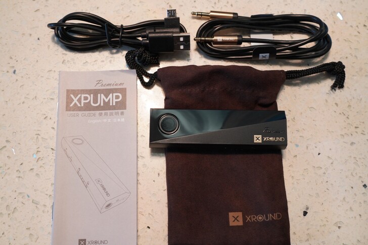 ▲所有東西拿出有說明書、XPUMP Premium本體、USB連接充電線、攜行袋、一條 3.5mm 音頻連接線。